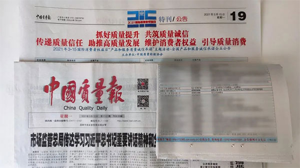 《中國質(zhì)量報(bào)》、《中國消費(fèi)者報(bào)》、中國經(jīng)濟(jì)網(wǎng)、中國質(zhì)量網(wǎng)、中國消費(fèi)網(wǎng)等多家權(quán)威媒體均予以集中展示和公告。不僅如此,公司還獲得了“全國質(zhì)量誠信先進(jìn)企業(yè)”的榮譽(yù)稱號,這是需要經(jīng)過中檢協(xié)長達(dá)三年的全方位監(jiān)督檢查合格才能獲得的榮譽(yù)稱號,其含金量可見一斑!