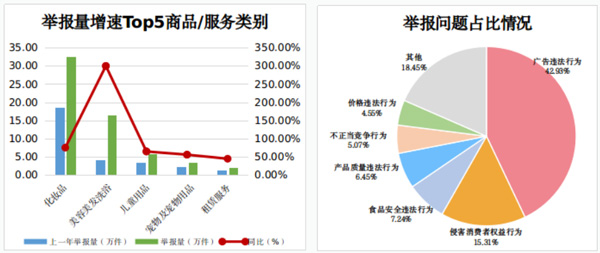 市場監(jiān)管部門堅(jiān)持民生導(dǎo)向,強(qiáng)化對(duì)投訴舉報(bào)問題的分析研判,依法嚴(yán)厲查處違法違規(guī)行為。針對(duì)廣告違法、虛假宣傳等舉報(bào)立案28.11萬件;針對(duì)侵害消費(fèi)者權(quán)益行為舉報(bào)立案6.3萬件,主要涉及銷售不符合安全要求產(chǎn)品、假冒偽劣、欺詐消費(fèi)者等;針對(duì)食品安全違法舉報(bào)立案4.87萬件。