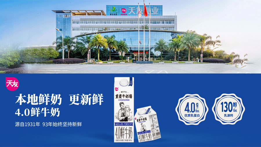 重慶市天友乳業(yè)股份有限公司始創(chuàng)于1931年,是一家具有93年歷史的專業(yè)乳制品全產(chǎn)業(yè)鏈企業(yè)。一直以成為“百年天友”為目標(biāo),始終以“成為最值得消費者喜愛的乳品領(lǐng)軍企業(yè)”為愿景。