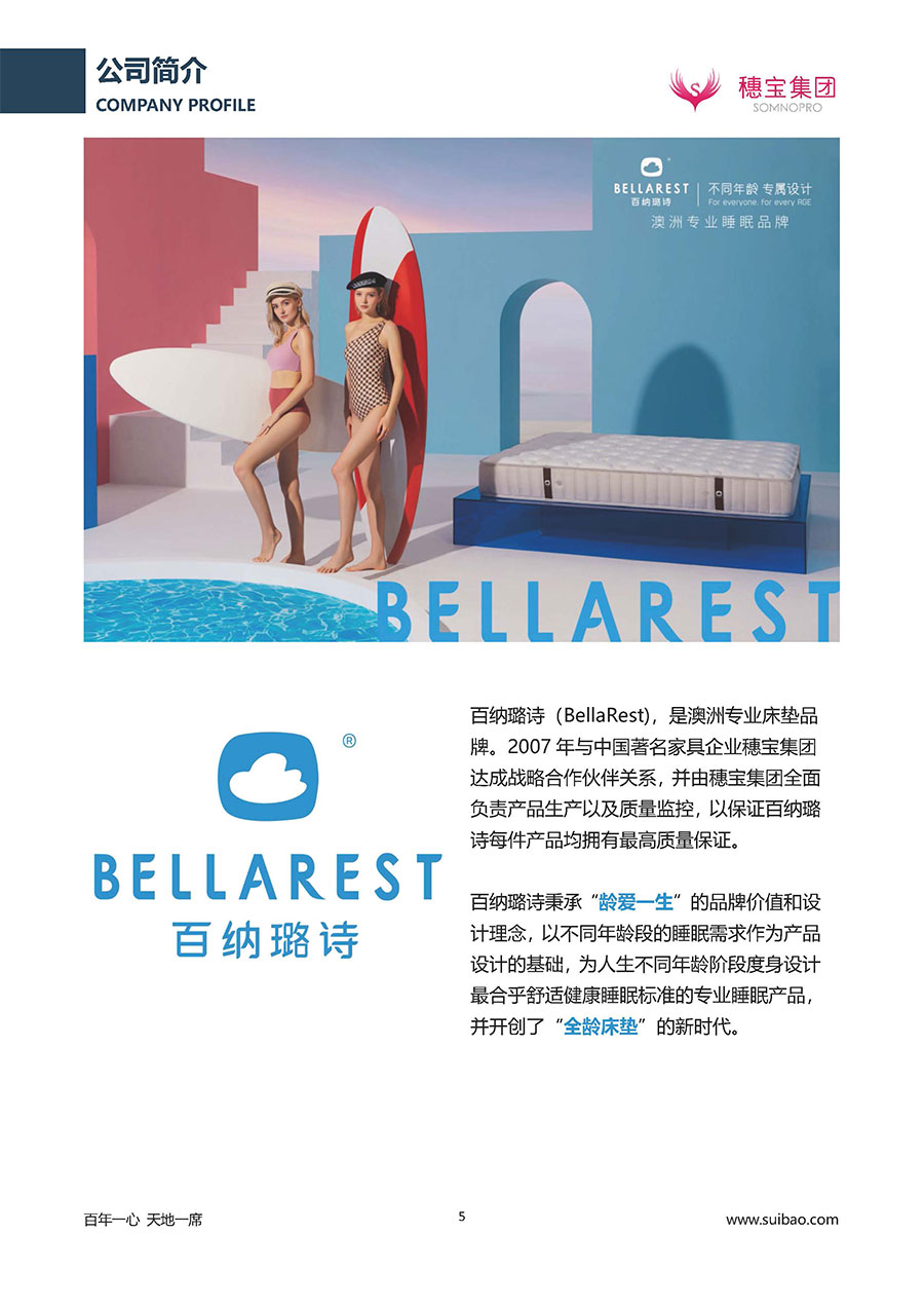 作為大家居行業(yè)的品質(zhì)倡導(dǎo)者,穗寶集團(tuán)不斷創(chuàng)新,豐富品牌實(shí)力,致力推動(dòng)中國(guó)床墊產(chǎn)業(yè)發(fā)展。至今,穗寶集團(tuán)旗下?lián)碛卸鄠€(gè)來(lái)自世界各地的優(yōu)質(zhì)品牌,包括:穗寶、詩(shī)貝艾爾、百納璐詩(shī)、睡客小鎮(zhèn)、Mr.Z早先生等;此外,穗寶集團(tuán)從世界各地甄選適合不同消費(fèi)者的優(yōu)質(zhì)睡眠產(chǎn)品,定制屬于您的睡眠空間。如今,穗寶集團(tuán)形成以研發(fā)、生產(chǎn)和銷售床墊為主營(yíng)業(yè)務(wù),涉及家具、家居裝飾、酒店配套等多項(xiàng)業(yè)務(wù)的企業(yè)群體。
