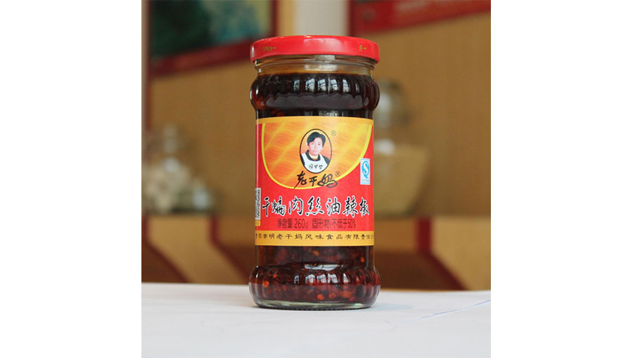 主要產(chǎn)品:老干媽牌風(fēng)味豆豉、油辣椒、辣三丁、香辣脆、香辣醬、香菇油辣椒,干煸肉絲,風(fēng)味雞,糟辣椒火鍋底料,植物油火鍋底料,肉絲豆豉,水豆豉,紅油腐乳,風(fēng)味腐乳,香辣菜,風(fēng)味糟辣剁椒,番茄辣醬
