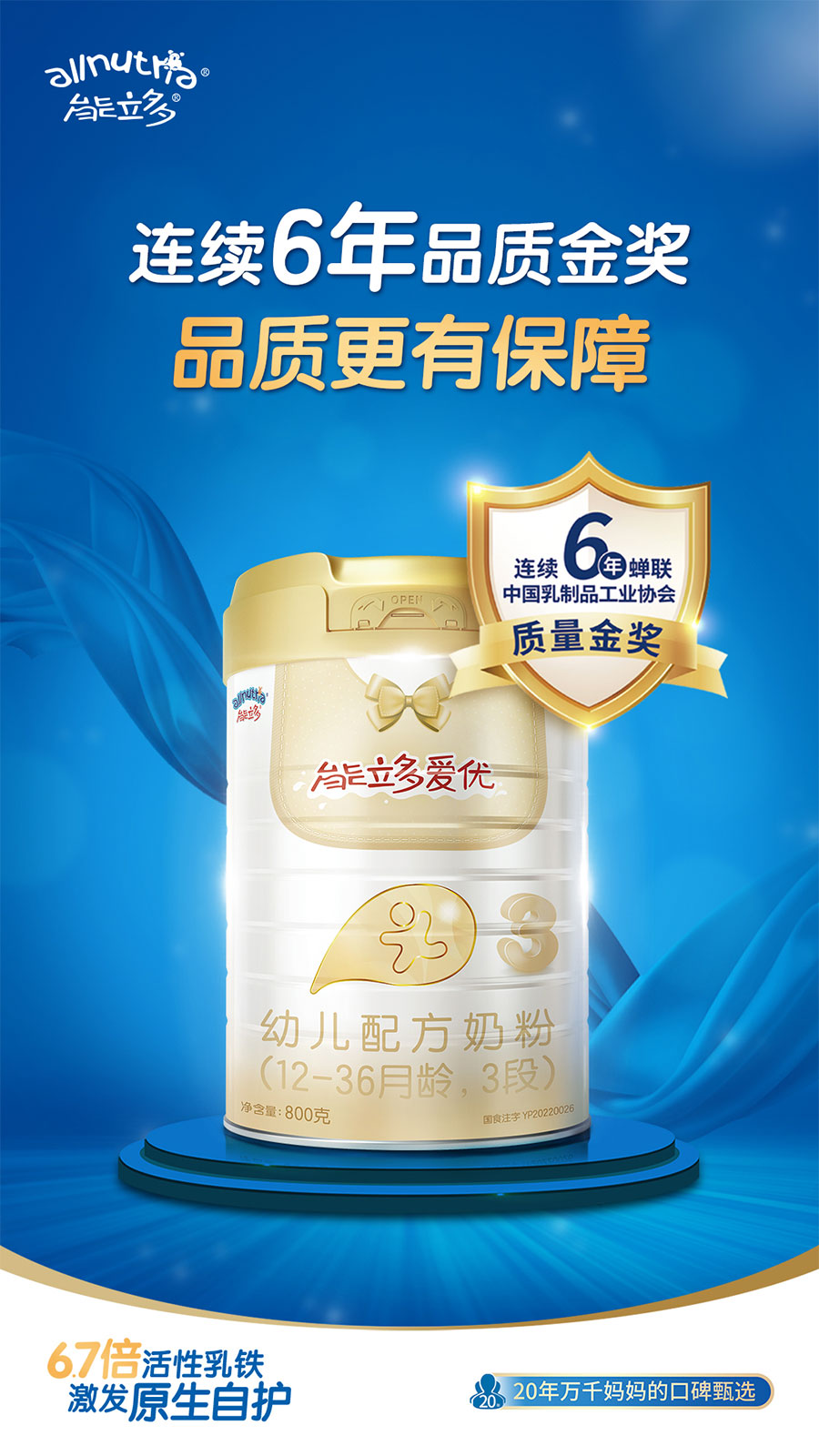 主要產品:嬰幼兒配方乳粉(能立多愛優(yōu)/能立多?;?卓護?系列)、調制乳粉