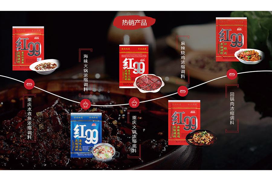 重慶紅九九食品有限公司創(chuàng)建于1993年,是一家專業(yè)生產(chǎn)紅99牌濃縮火鍋底料、濃縮調(diào)味品系列產(chǎn)品的市級農(nóng)業(yè)產(chǎn)業(yè)化重點龍頭企業(yè)。
