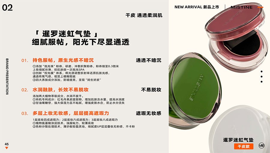 主要產品:MISTINE蜜絲婷防曬、美妝、底妝、彩妝、護膚、香水、個護等產品