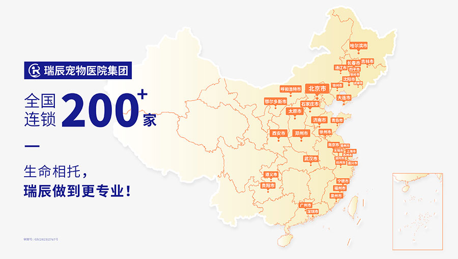 瑞辰寵物醫(yī)院集團(tuán)由晨壹基金、KKR集團(tuán)、愛爾眼科及少量國(guó)有資本等投資機(jī)構(gòu)共同投資。集團(tuán)現(xiàn)已完成B輪融資,在全國(guó)超50個(gè)大中城市擁有200+家優(yōu)秀寵物醫(yī)院。截至2024年6月,集團(tuán)旗下醫(yī)院覆蓋區(qū)域包括北京、河北、山西、內(nèi)蒙古、遼寧、吉林、黑龍江、上海、江蘇、浙江、福建、山東、河南、湖北、廣東、貴州與陜西等地。以良好發(fā)展態(tài)勢(shì)為依托,聚焦行業(yè)市場(chǎng),集團(tuán)合理規(guī)劃在全國(guó)重點(diǎn)區(qū)域優(yōu)先集中建設(shè)寵物轉(zhuǎn)診中心醫(yī)院和國(guó)際化寵物醫(yī)院的戰(zhàn)略布局,致力于保障中國(guó)萬千家庭的寵物健康。