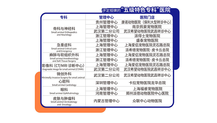 為合理利用醫(yī)療資源,提高醫(yī)院科學(xué)管理水平與醫(yī)療服務(wù)質(zhì)量,保障伴侶動(dòng)物的健康,集團(tuán)進(jìn)一步調(diào)整與健全三級(jí)醫(yī)療預(yù)防體系,建立醫(yī)院評(píng)審制度,根據(jù)醫(yī)院的功能定位、診療任務(wù)、設(shè)施條件、學(xué)科發(fā)展建設(shè)、醫(yī)療服務(wù)質(zhì)量和科學(xué)管理等方面的綜合水平,對(duì)集團(tuán)內(nèi)所有醫(yī)院進(jìn)行科學(xué)分級(jí)管理。