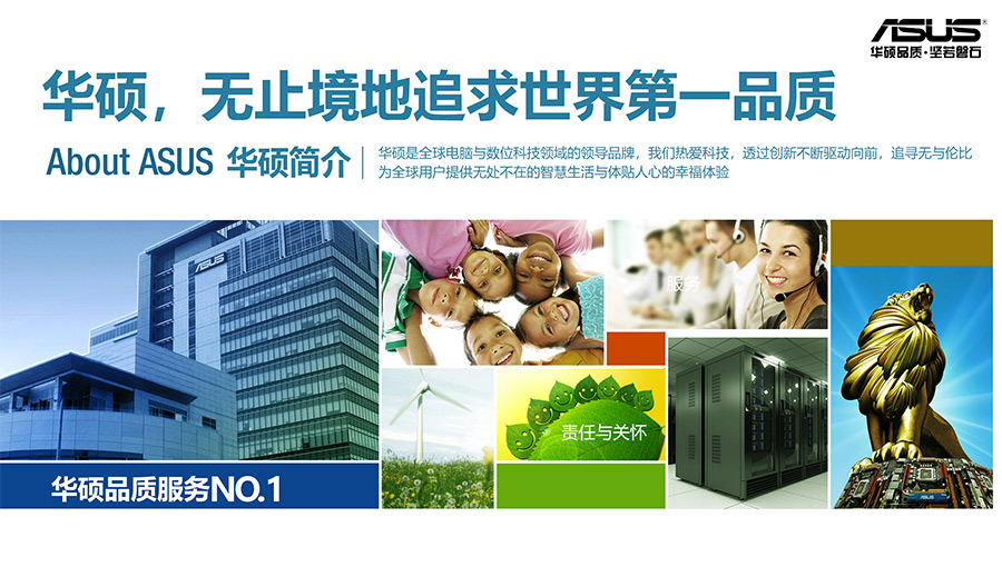人文的華碩——華碩設(shè)計思維始于以人為本,展現(xiàn)出杰出的品質(zhì)和無與倫比的創(chuàng)新精神,堅持將每件事做到極致。成立以來,華碩人秉承謙、誠、勤、敏、勇五徳,著眼未來,通過創(chuàng)新不斷驅(qū)動向前,追求卓越勇于接受挑戰(zhàn),形成了與眾不同的企業(yè)文化。經(jīng)營理念上,堅持培育、珍惜、關(guān)懷員工,讓華碩人盡情地發(fā)揮自身潛力;堅守誠信、勤儉、崇本、務(wù)實的正道;堅持不懈追求更高的品質(zhì)、速度、服務(wù)、創(chuàng)新、成本,立志以綠色科技為人類社會環(huán)境真正做出貢獻(xiàn)。