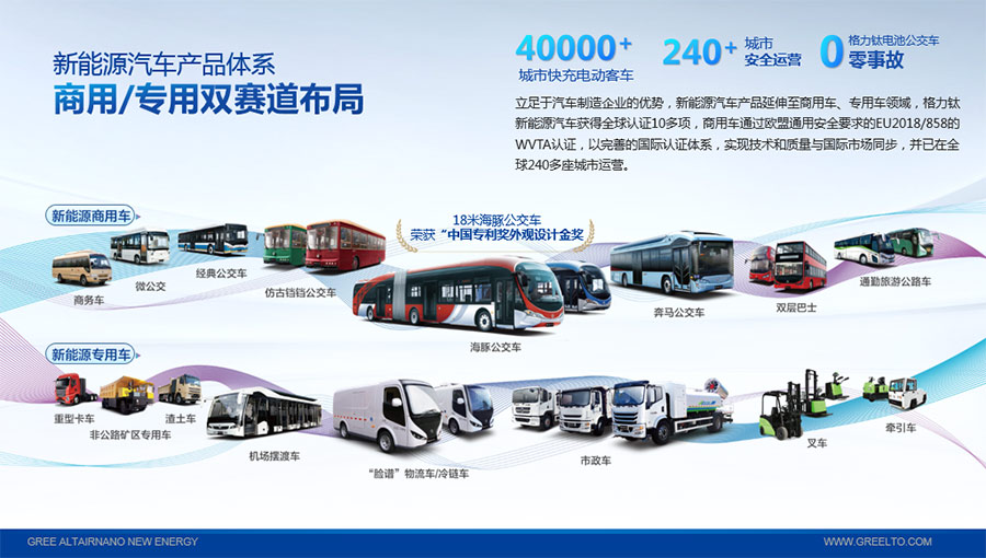 以完善的研發(fā)體系,格力鈦加快技術(shù)創(chuàng)新與產(chǎn)業(yè)升級(jí)的步伐。格力鈦研發(fā)的格力鈦電池安全性長(zhǎng)期領(lǐng)跑行業(yè),憑借具有高安全、大倍率、快充放、耐寬溫、長(zhǎng)壽命等特性,被選為“國(guó)家制造業(yè)單項(xiàng)冠軍產(chǎn)品”,廣泛應(yīng)用于新能源汽車以及工商業(yè)園區(qū)、通訊基站、電網(wǎng)調(diào)頻、軌道交通、風(fēng)光消納、船舶岸電、家庭住宅、軍事科研等儲(chǔ)能領(lǐng)域,具有廣闊的市場(chǎng)前景和應(yīng)用價(jià)值。目前,格力鈦儲(chǔ)能產(chǎn)品已在丹麥、瑞士、芬蘭等全球30多個(gè)國(guó)家和地區(qū)使用,新能源汽車產(chǎn)品在北京、杭州、武漢、成都、青島、哈爾濱、包頭、??诘热?40多座城市運(yùn)營(yíng),12年全球零電池事故安全運(yùn)行。