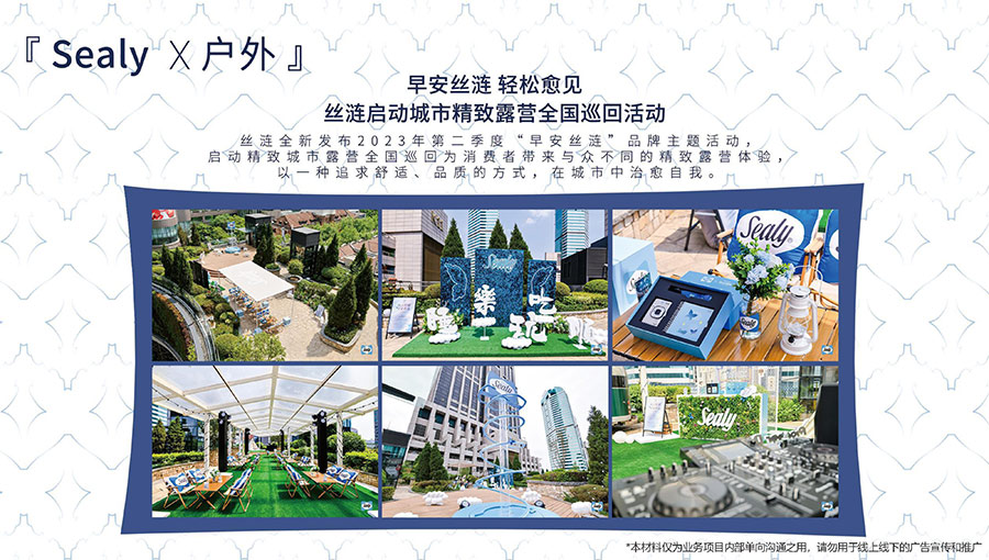 絲漣全新發(fā)布2023年第二季度“早安絲漣”品牌主題活動,啟動精致城市露營全國巡回為消費者帶來與眾不同的精致露營體驗,以一種追求舒適、品質的方式,在城市中治愈自我。