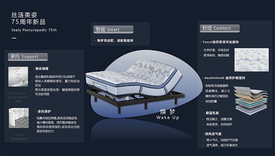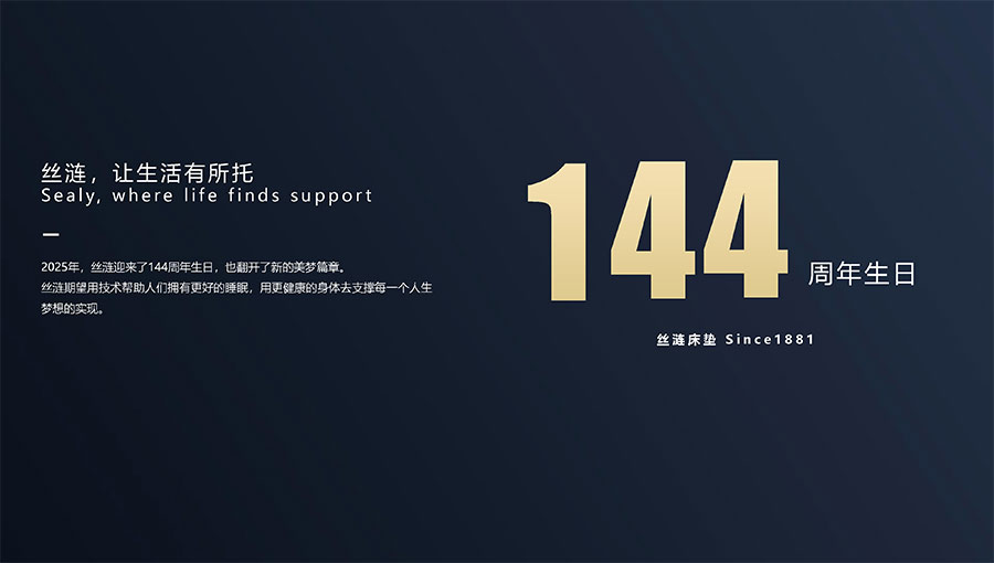 絲漣SEALY1881年誕生于美國,自1885年第一張絲漣床墊問世伊始,便憑借其卓越性能與舒適安睡體驗聲名大噪。1950年,絲漣開創(chuàng)床墊與醫(yī)學權威共研的先河,絲漣美姿以科學的脊柱支撐理念徹底重塑了床墊行業(yè)。75年來,持續(xù)的技術升級和創(chuàng)新使得美姿彈簧不斷進化,只為打造更加舒適健康的睡眠體驗。
