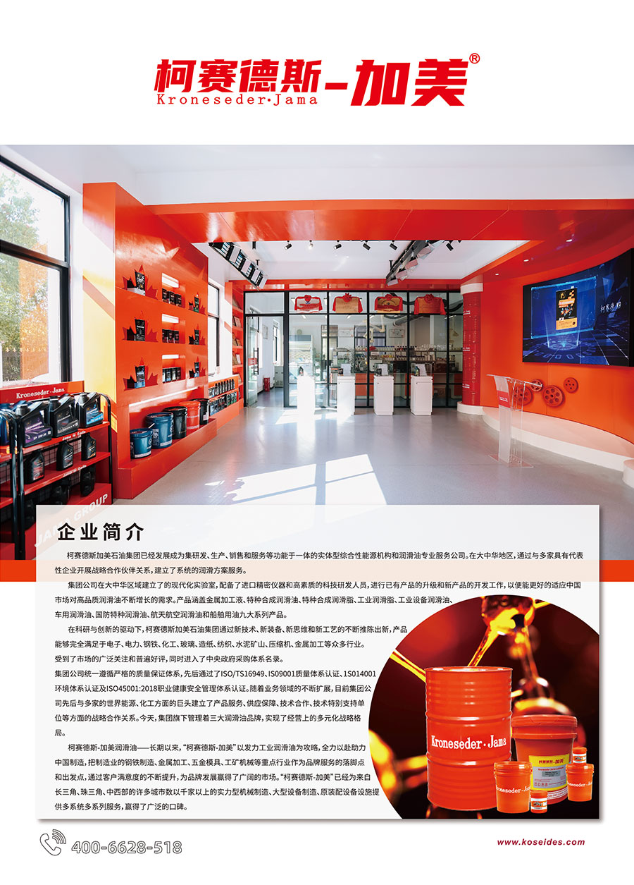 長期以來,“柯賽德斯-加美Kroneseder·Jama”以發(fā)力工業(yè)潤滑油為攻略,全力以赴助力中國制造,把制造業(yè)的鋼鐵制造、金屬加工、五金模具、工礦機械等重點行業(yè)作為品牌服務的落腳點和出發(fā)點,通過客戶滿意度的不斷提升,為品牌發(fā)展贏得了廣闊的市場。“柯賽德斯-加美”已經(jīng)為來自長三角、珠三角、中西部的許多城市數(shù)以千家以上的實力型機械制造、大型設備制造、原裝配設備設施提供多系統(tǒng)多系列服務,贏得了廣泛的口碑。