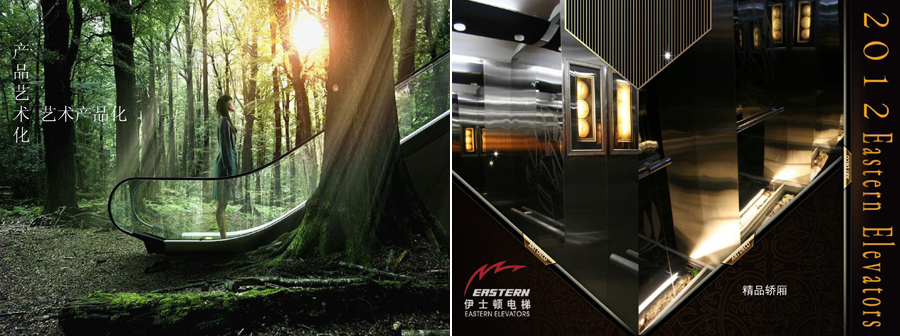 位于圖案下方的英文單詞“EASTERN”,采用黑體斜向手法繪制的,其造型穩(wěn)健、遒勁、與流線型線條渾然一體,充分表達了伊士頓電梯的品牌特征。