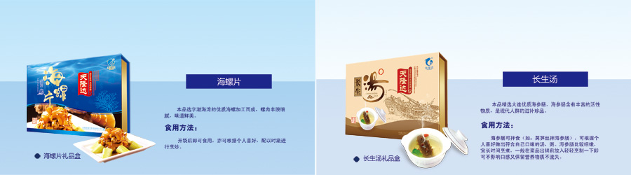 主要產(chǎn)品:天隆達(dá)牌即食海蜇、海草、海帶、海參、鮑魚等