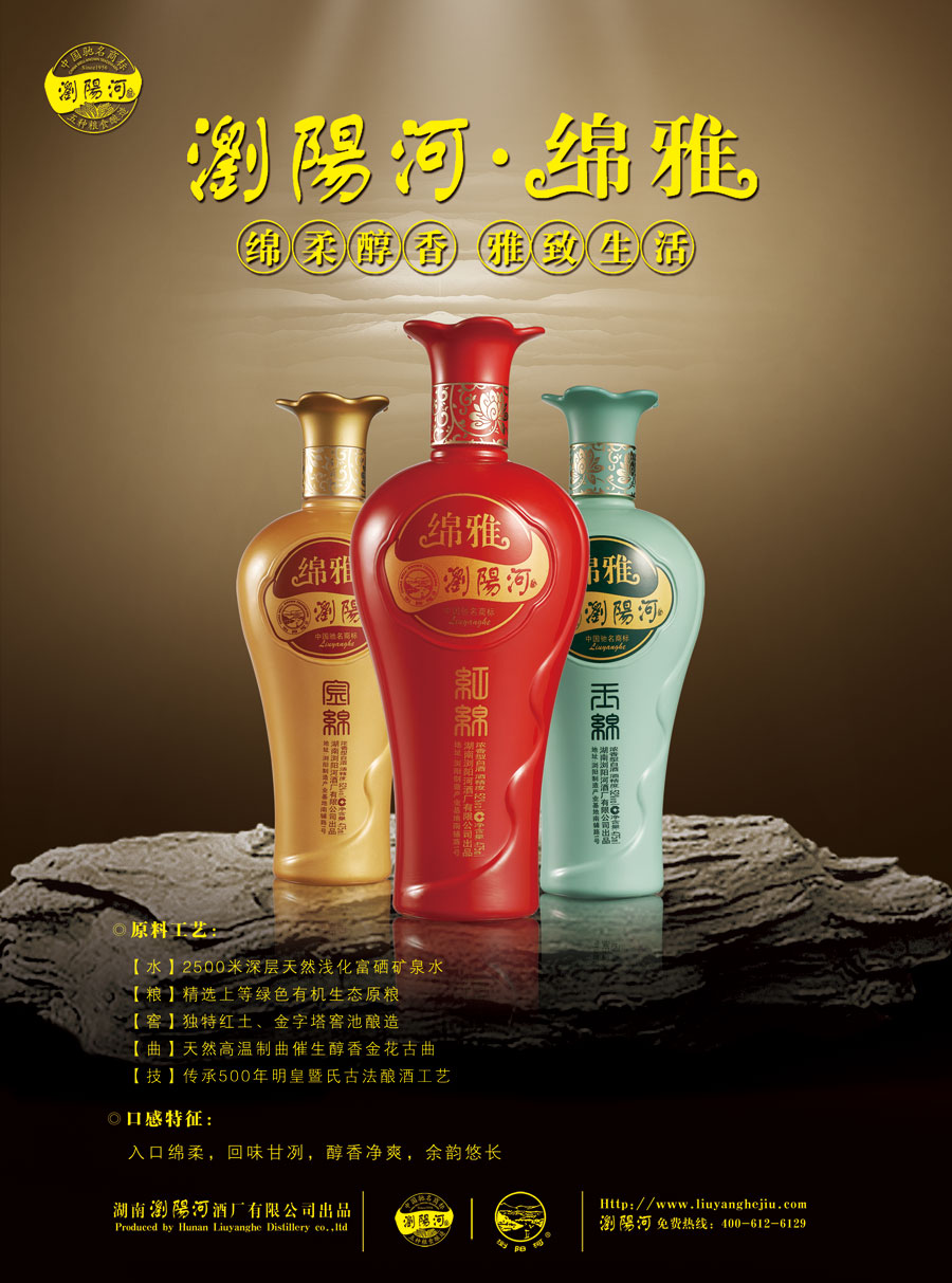 主要產(chǎn)品:瀏陽河綿雅系列、瀏陽河生態(tài)年份系列等瀏陽河酒系列產(chǎn)品