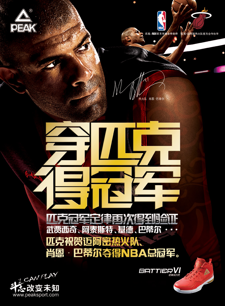 品牌國際化:2005年,匹克全面加速“品牌國際化”戰(zhàn)略,先后通過贊助歐洲籃球全明星賽、斯坦科維奇杯洲際籃球賽等國際一流賽事,攜手休斯頓火箭隊、邁阿密熱火隊等頂級NBA球隊,結盟NBA、FIBA、WTA等頂級國際賽事組織,簽約巴蒂爾、基德等20多位NBA頂級球星以及格沃特索娃等9位網(wǎng)球明星,支持伊拉克、新西蘭等10多個國家隊和國家奧委會,一舉成為中國體育品牌中,國際資源最豐富的國際化運動品牌。