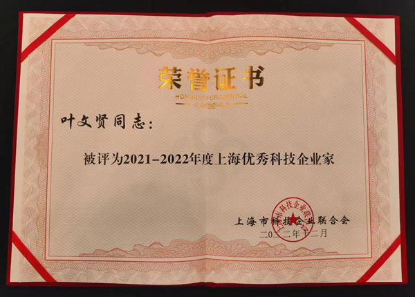 柯賽德斯加美石油集團董事長葉文賢被表彰為上海市優(yōu)秀科技企業(yè)家