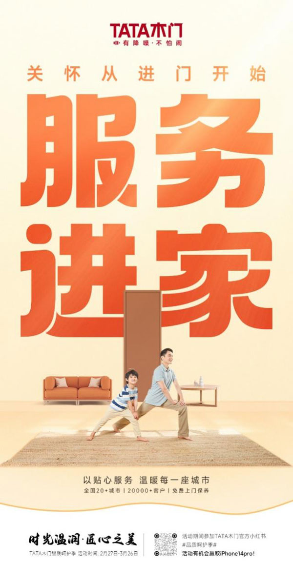 與此同時(shí),TATA木門延續(xù)了往年的服務(wù)月活動(dòng),特別為全國20多座城市,20000多位用戶提供免費(fèi)上門保養(yǎng)服務(wù),用實(shí)際行動(dòng)傳遞著品牌的溫度。除此之外,為回饋新老用戶,TATA木門推出木門放心購活動(dòng),以超值的價(jià)格全新讓利于消費(fèi)者,打通全平臺銷售通道,讓消費(fèi)者能夠以最值的價(jià)格獲得最優(yōu)質(zhì)的品質(zhì)和服務(wù)。