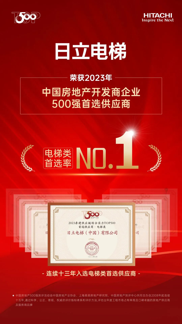 電梯類NO.1 日立電梯連續(xù)13年入選中國(guó)房地產(chǎn)首選供應(yīng)商