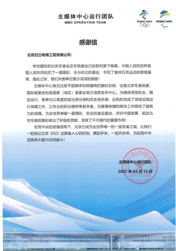 日立電梯還為第24屆北京冬季奧林匹克運(yùn)動(dòng)會(huì)兩大賽區(qū)6大場館、提供了超過200臺(tái)電扶梯產(chǎn)品,包括唯一新建冰上競賽場館“冰絲帶”,并且在長達(dá)兩個(gè)多月的駐點(diǎn)保障期間達(dá)成零故障護(hù)航目標(biāo),贏得冬奧組委的認(rèn)可。