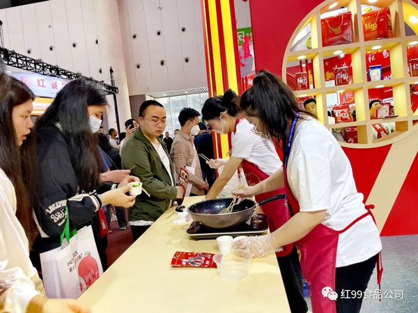 在紅九九品牌服務(wù)商-重慶貓頭鷹科技公司展區(qū),工作人員現(xiàn)場展示并詳細(xì)說明具體操作流程,只需兩步就能享用地道重慶火鍋。省時、省事、省心、方便、快捷是它的優(yōu)點(diǎn);同時,紅99牌濃縮火鍋底料更是眾多家庭、餐廳、火鍋餐館、酒店選擇的方便型調(diào)味料,也是饋贈親友之佳品。希望可以將這份美味分享給全國乃至全世界的朋友們,即使在他鄉(xiāng)也能吃到正宗的重慶火鍋。