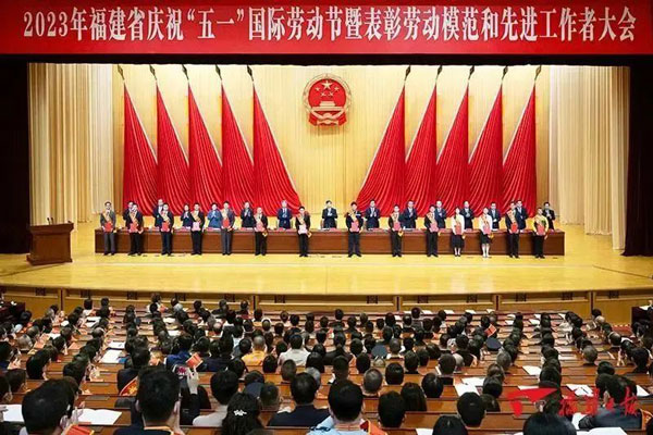 4月25日,福建省慶祝“五一”國際勞動節(jié)暨表彰勞動模范和先進工作者大會在福州舉行。省委書記、省人大常委會主任周祖翼代表省委、省政府向受到表彰的勞動模范和先進工作者表示熱烈祝賀。省委副書記羅東川宣讀表彰決定。福建省海佳集團股份有限公司董事長林建忠榮獲“福建省勞動模范”榮譽稱號。