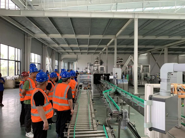 嘉賓們參觀自動(dòng)化灌裝生產(chǎn)線