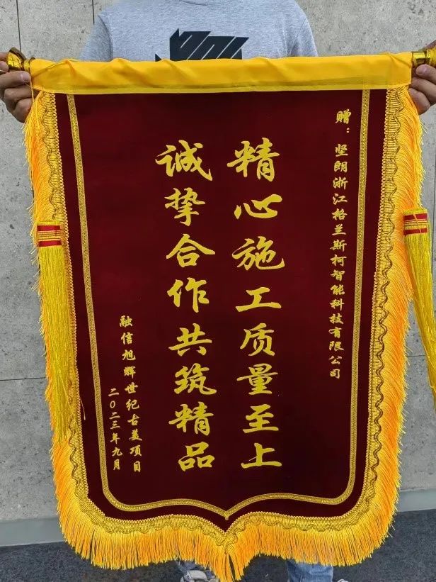 梧葉新黃柿葉紅,更兼烏桕與丹楓,在九月滿城桂花初香的時節(jié),堅朗格蘭斯柯新風收到了來自上海融信旭輝世紀古美項目部的錦旗,這是對格蘭斯柯新風在克服疫情影響下按時、保質(zhì)完成超低能耗新風系統(tǒng)供貨及施工任務的充分肯定。