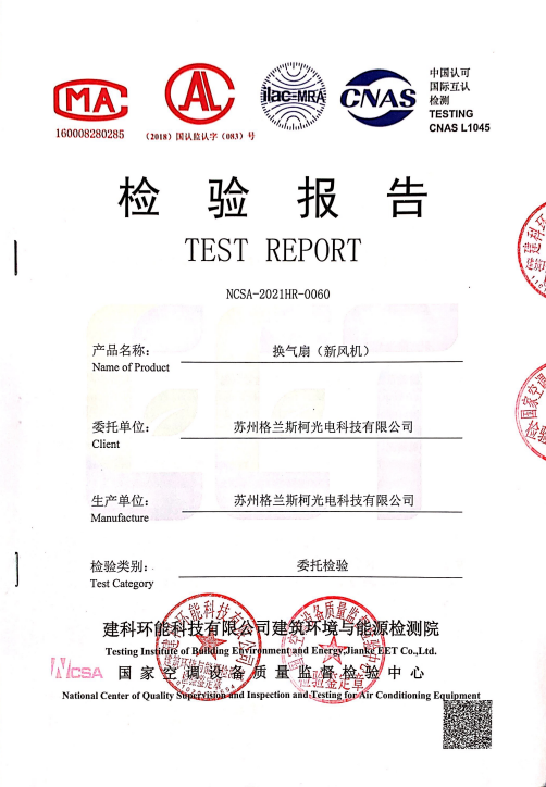 格蘭斯柯新風事業(yè)部在從堅朗上海銷售區(qū)了解到世紀古美項目的超低能耗項目需求后,便立即成立專門上海被動房項目組,利用公司多年深耕新風領域的研發(fā)技術積累,在不到五個月的時間里,研發(fā)設計出滿足世紀古美項目技術要求的設備并完成第三方測試,取得滿足項目要求的第三方測試報告。