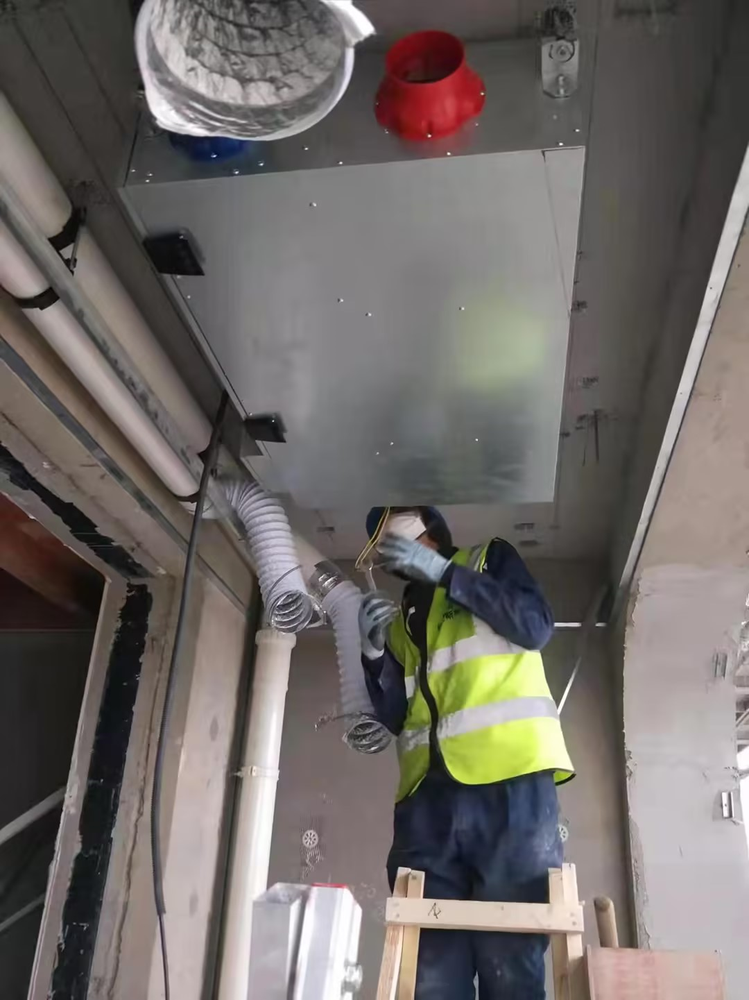 自2021年12月工程進場施工至2023年3月調(diào)試完成第三方驗收通過,整個項目工期歷時15個月。在堅朗上海銷售區(qū)的大力支持下,格蘭斯柯新風安裝團隊與世紀古美項目部緊密配合,精心策劃組織、科學安排施工。