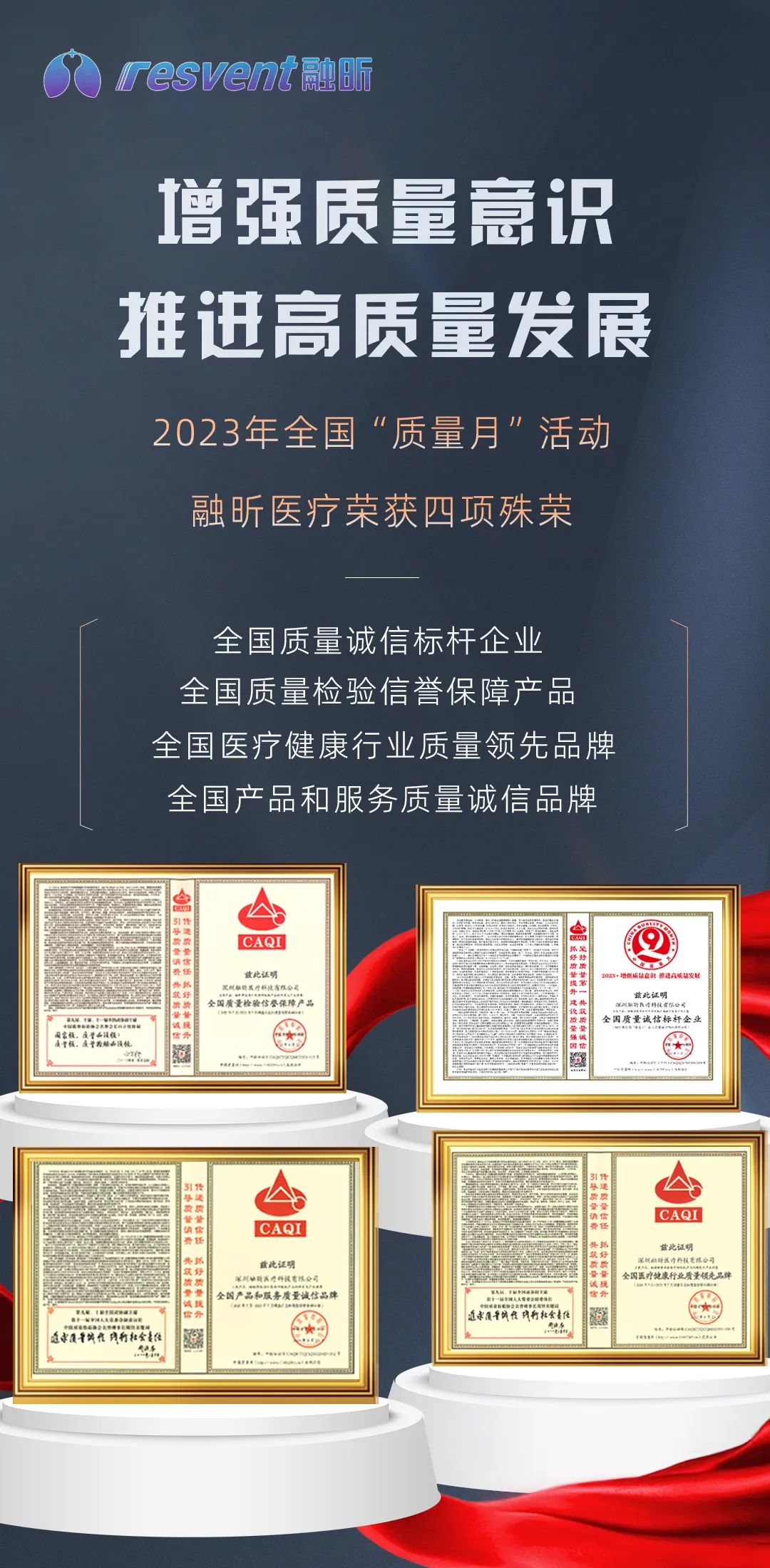 融昕醫(yī)療榮獲2023全國(guó)“質(zhì)量月”多項(xiàng)殊榮!