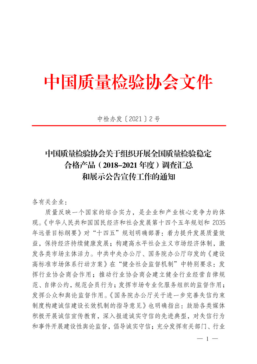 中國質(zhì)量檢驗(yàn)協(xié)會(huì)關(guān)于組織開展全國質(zhì)量檢驗(yàn)穩(wěn)定