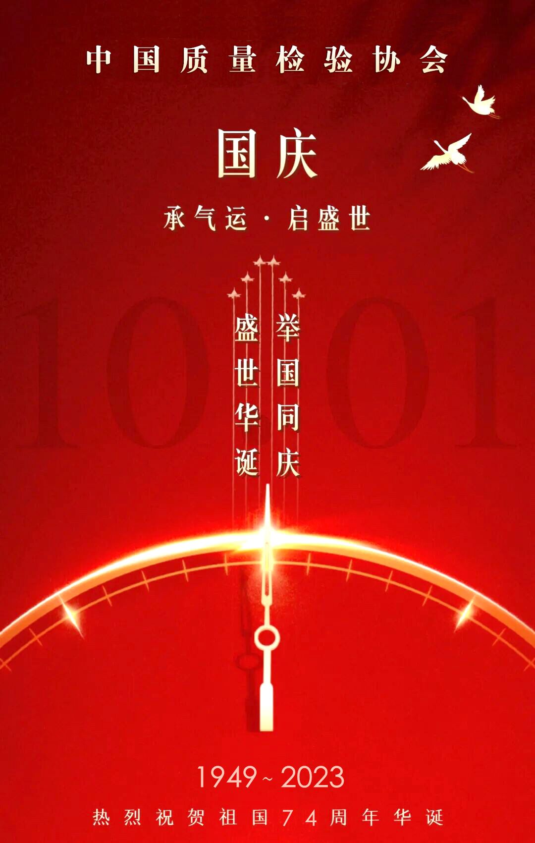 山河披錦繡,盛世寫華章。2023年10月1日,我們迎來中華人民共和國成立74歲華誕。中國質(zhì)量檢驗(yàn)協(xié)會謹(jǐn)此攜全體會員誠摯祝福偉大的中華人民共和國:生日快樂!