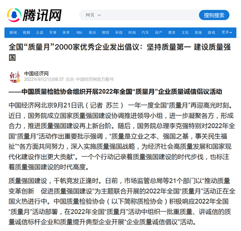 騰訊網(wǎng):強(qiáng)基固本筑誠信 共圓質(zhì)量強(qiáng)國夢——中國質(zhì)量檢驗(yàn)協(xié)會組織開展2022年全國“質(zhì)量月”企業(yè)質(zhì)量誠信倡議活動