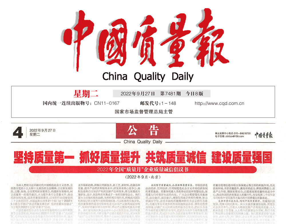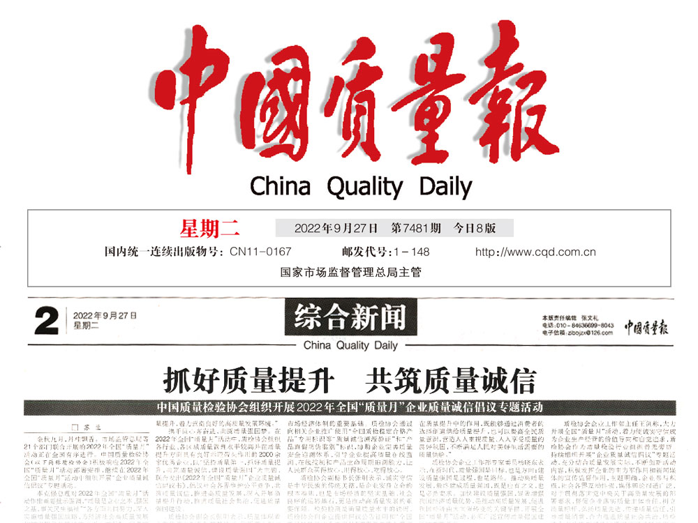 中國質(zhì)量報:抓好質(zhì)量提升 共筑質(zhì)量誠信